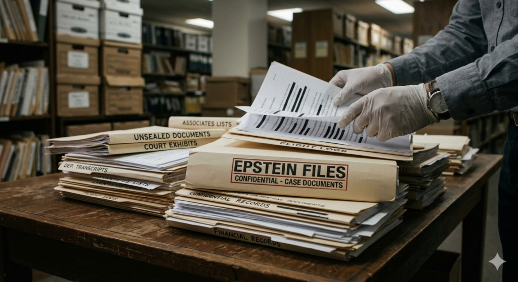 জেফ্রি এপস্টাইন ও তার সহযোগীদের সম্পর্কিত নথিপত্র এপস্টেইন ফাইলস হলো আংশিকভাবে প্রকাশিত লক্ষ লক্ষ নথি, ছবি, ভিডিও ও ইমেইলের একটি সংগ্রহ, যেখানে মার্কিন অর্থনীতিবিদ ও দণ্ডিত শিশু যৌন অপরাধী জেফ্রি এপস্টেইনের কার্যকলাপের বিবরণ রয়েছে। এতে তার সামাজিক পরিমণ্ডলে থাকা বিভিন্ন জনপরিচিত ব্যক্তি, রাজনীতিবিদ ও সেলিব্রিটিদের সম্পর্কিত তথ্যও অন্তর্ভুক্ত আছে। এই ফাইলগুলোর মধ্যে রয়েছে এপস্টেইন ও তার সহযোগীদের বিরুদ্ধে ফৌজদারি মামলায় প্রমাণ হিসেবে সংগৃহীত নথিপত্র। এগুলো এফবিআই-এর Sentinel কেস ম্যানেজমেন্ট সিস্টেমে ৩০০ গিগাবাইটেরও বেশি ডেটা হিসেবে সংরক্ষিত ছিল, অন্যান্য মিডিয়াসহ। এতে তার যোগাযোগের খাতা (কন্টাক্ট বুক), তার বিমানগুলোর ফ্লাইট লগ এবং আদালতের নথিও অন্তর্ভুক্ত রয়েছে। অনেক নথি ও ফাইল এপস্টেইনের সম্পত্তির অন্তর্গত, যা আইনজীবী ড্যারেন ইন্ডাইক এবং হিসাবরক্ষক রিচার্ড কান পরিচালনা করেন। ২০২৫ সালের নভেম্বরে, যুক্তরাষ্ট্রের প্রতিনিধি পরিষদ Epstein Files Transparency Act পাস করে এবং যুক্তরাষ্ট্রের সিনেট সর্বসম্মতিক্রমে তা অনুমোদন করে। পরদিনই প্রেসিডেন্ট ডোনাল্ড ট্রাম্প এতে স্বাক্ষর করেন। পরের মাসে যুক্তরাষ্ট্রের বিচার বিভাগ অল্প কিছু ফাইল প্রকাশ করে, যা মার্কিন যুক্তরাষ্ট্রের উভয় প্রধান রাজনৈতিক দলের পক্ষ থেকেই সমালোচনার জন্ম দেয়। ট্রাম্প তার ২০২৪ সালের প্রেসিডেন্ট নির্বাচনী প্রচারণার সময় ফাইলগুলো প্রকাশের ধারণা তুলে ধরেছিলেন। তবে পরবর্তীতে তিনি দাবি করেন, ফাইলগুলোকে ঘিরে বিতর্ক ডেমোক্রেটিক পার্টির সদস্যদের দ্বারা তৈরি করা হয়েছে। ২০২৬ সালের ৩০ জানুয়ারি অতিরিক্ত ৩০ লক্ষ (৩ মিলিয়ন) পৃষ্ঠা প্রকাশ করা হয়, যার মধ্যে ২,০০০টি ভিডিও ও ১,৮০,০০০টি ছবি ছিল। বিচার বিভাগ স্বীকার করে যে মোট ৬০ লক্ষ (৬ মিলিয়ন) পৃষ্ঠা প্রকাশযোগ্য হতে পারে, তবে তারা জানায় যে ৩০ জানুয়ারির প্রকাশই হবে শেষ ধাপ এবং তাদের আইনি বাধ্যবাধকতা পূরণ হয়েছে। প্রকাশিত নথিতে বহু জনপরিচিত ব্যক্তির নাম উল্লেখ রয়েছে, যা তাদের কর্মকাণ্ড নিয়ে বাড়তি নজরদারি ও তদন্তের সৃষ্টি করেছে। ফাইল প্রকাশের পর, এপস্টেইনের সঙ্গে সম্পর্ক থাকার কারণে দুজন ব্যক্তির বিরুদ্ধে ফৌজদারি তদন্ত শুরু হয়েছে। এর মধ্যে একজনের বিরুদ্ধে ইতোমধ্যে অভিযোগ গঠন করা হয়েছে—নরওয়ের সাবেক প্রধানমন্ত্রী থর্বিয়র্ন ইয়াগল্যান্ড, যার বিরুদ্ধে গুরুতর দুর্নীতির অভিযোগ আনা হয়েছে, এবং ব্রিটিশ রাজনীতিবিদ পিটার ম্যান্ডেলসন। ২০২৬ সালের ফেব্রুয়ারি পর্যন্ত, যেসব ব্যক্তির নাম ফাইলগুলোতে ঘন ঘন পাওয়া যায়, তাদের মধ্যে রয়েছেন: এপস্টেইনের সহকারী লেসলি গ্রফ (১,৫৭,৬১৩ বার উল্লেখ), হিসাবরক্ষক রিচার্ড কান (৫২,৭৮১ বার উল্লেখ), 