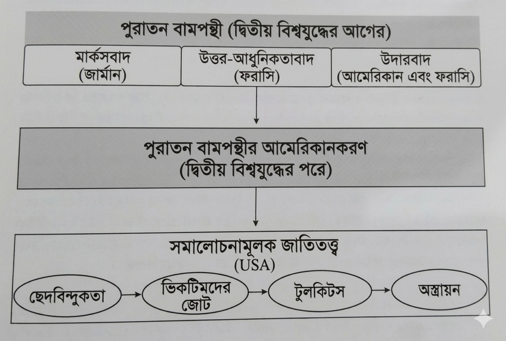 ছবিতে একটি প্রবাহচিত্রের মাধ্যমে দেখানো হয়েছে কীভাবে পুরনো বামপন্থী আদর্শ পরিবর্তিত হয়ে আধুনিক রূপ নিয়েছে: